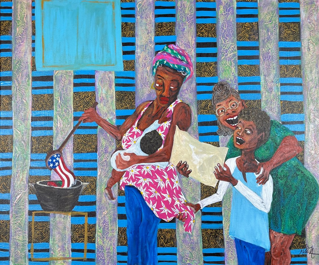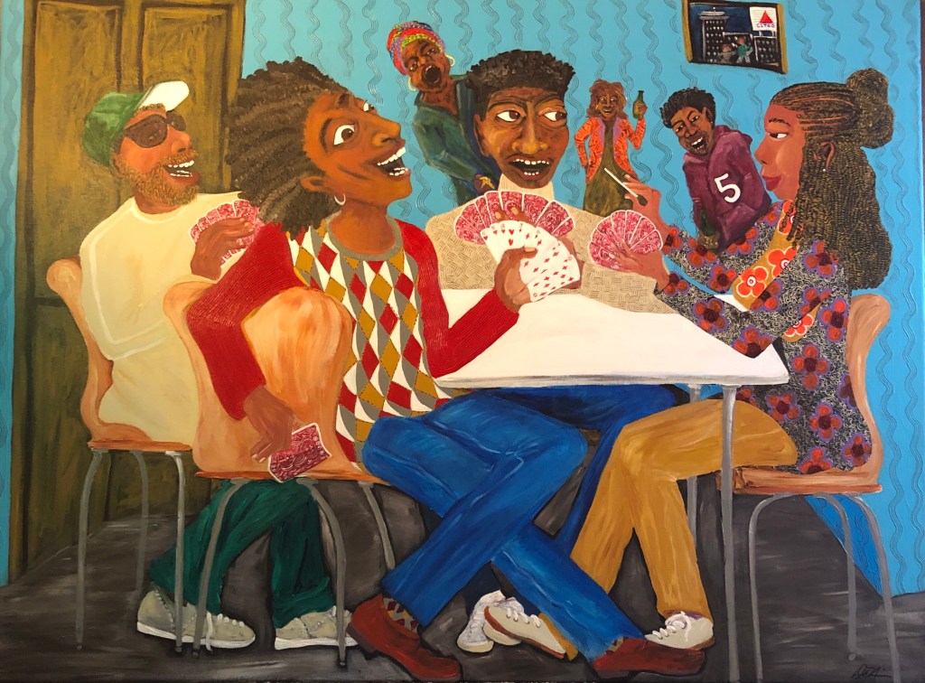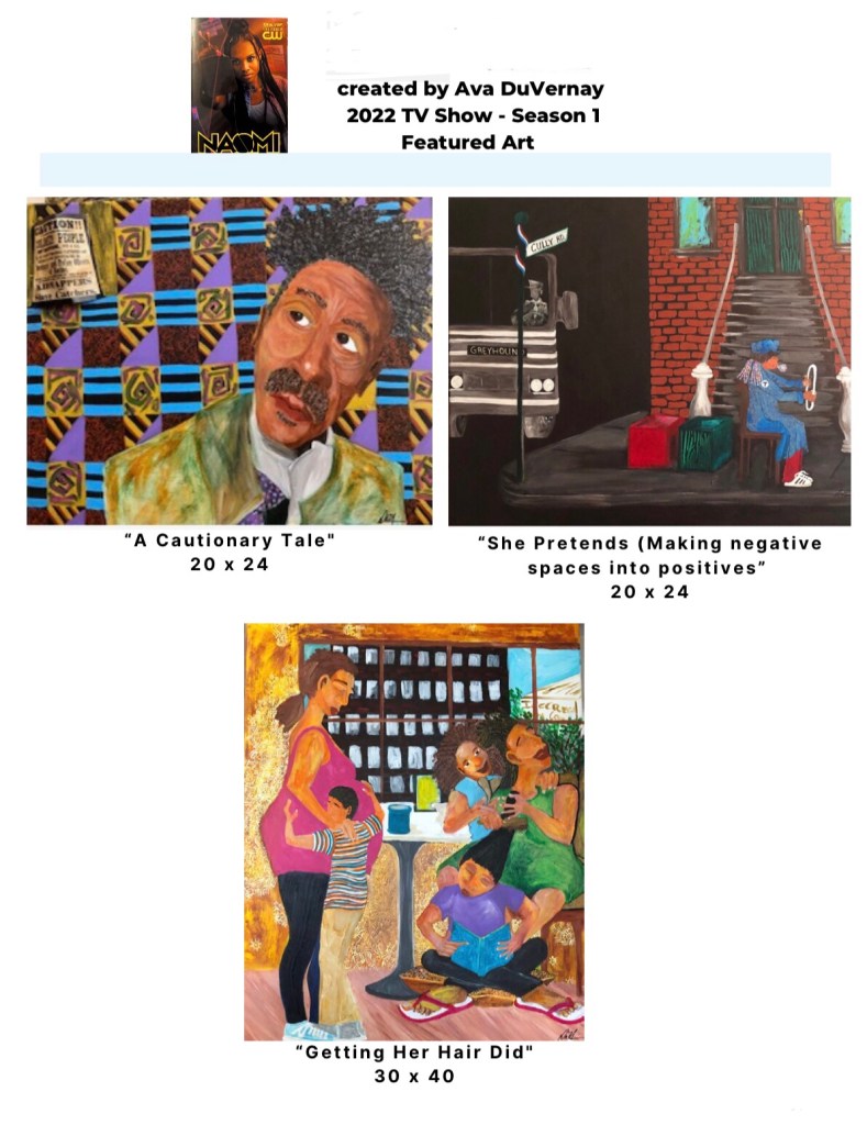 DaNice’s solo exhibition in the opening scenes of “Naomi” Ep 104 . Directed by Neema Barnette, it aired in February 2022 on the The CW Network. The show was created by Ava DuVernay. Streaming on HBOMax. “Storm’s Coming“The Empty Nesters”“Queen” (from “Queen & Her Jacks” in detail)Walking in Someone Else’s Shoes 24” x 20” “What She Thought She Heard”“A Bright Moment” “Queen of Whist” “Jack” (from “Queen of Jacks” in detail)“Queen in Rollers”“My Three Sons” Courtesy photo in private collectionsA Cautionary Tale“His Hugz““Jack’s” (from “Queen of Jacks” in detail) “Ameryca’s Two Sons”“Her Melting Pot”“Sisterhood Think Tank”“Waiting on her Date”“Exit Laughter”“Out On The Porch” “Queen of Jack’s”