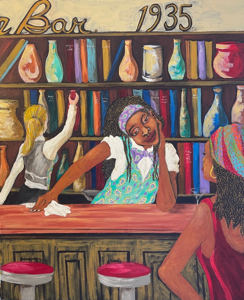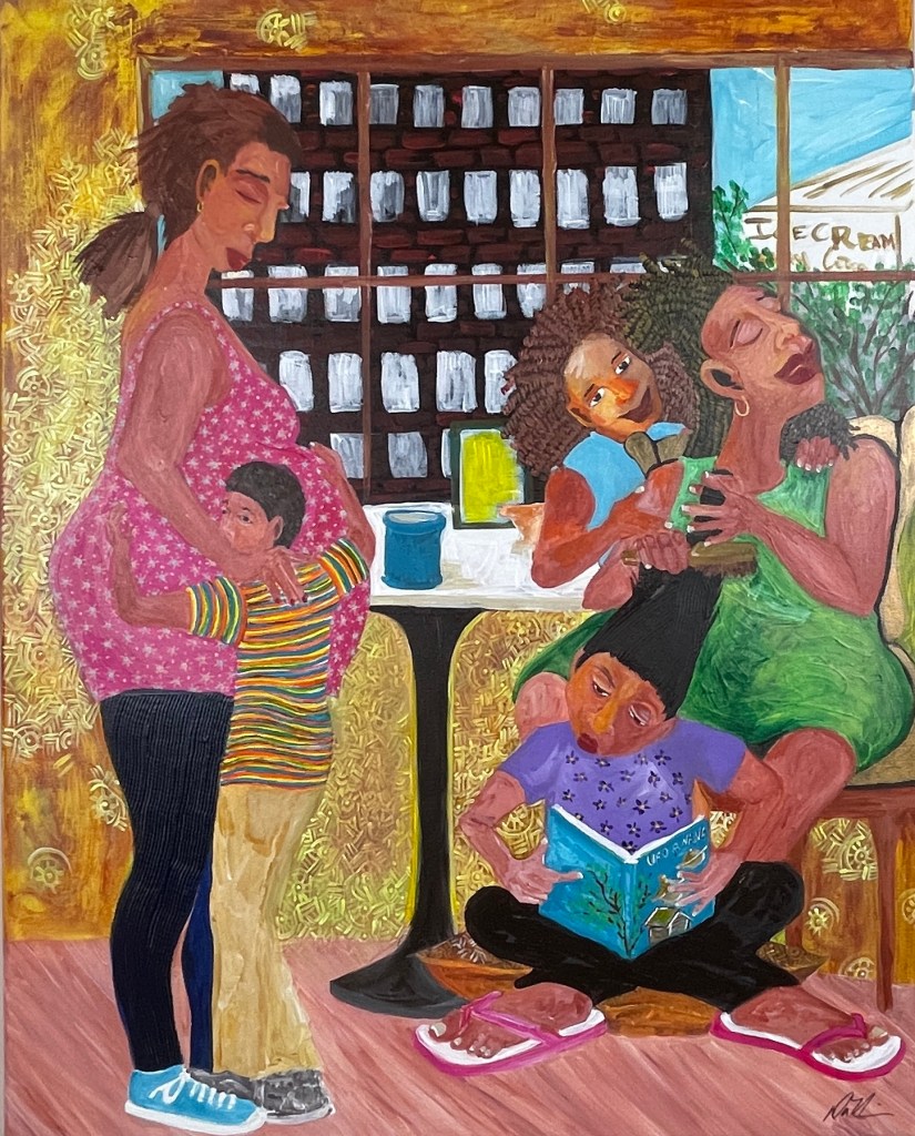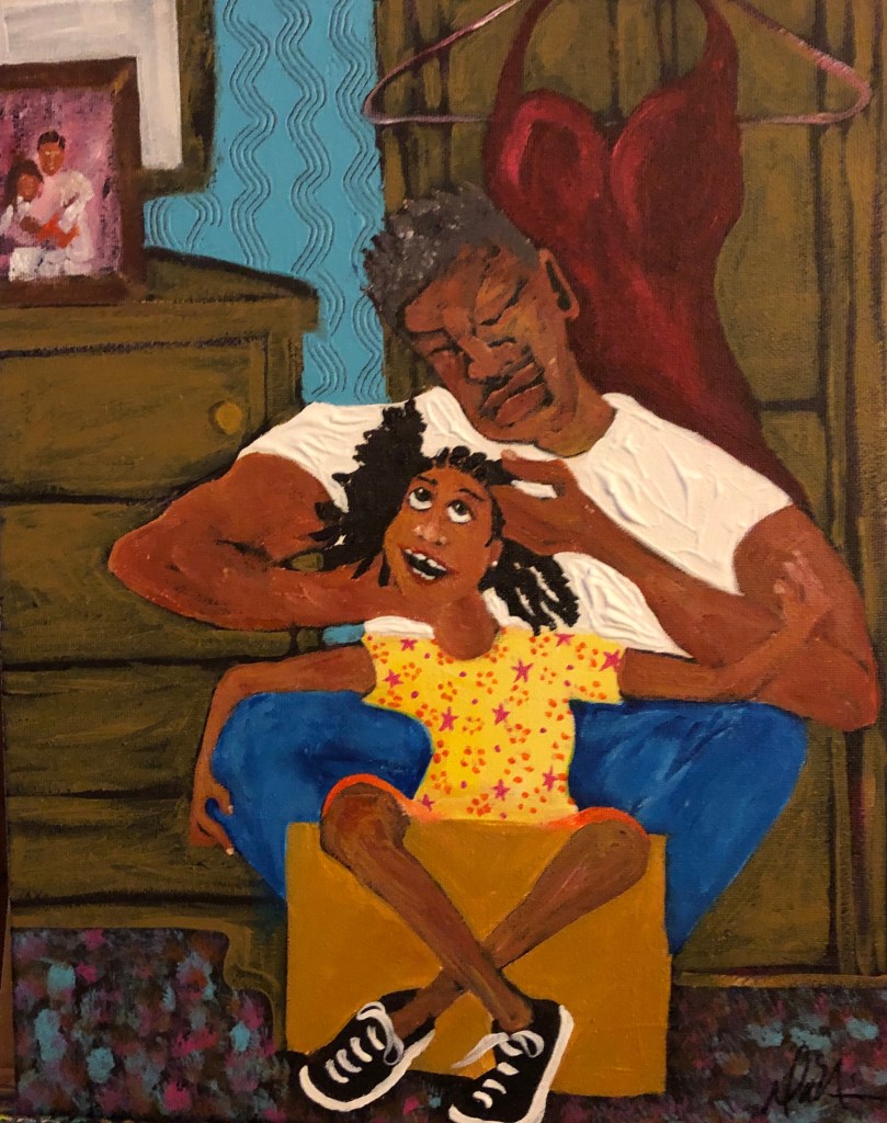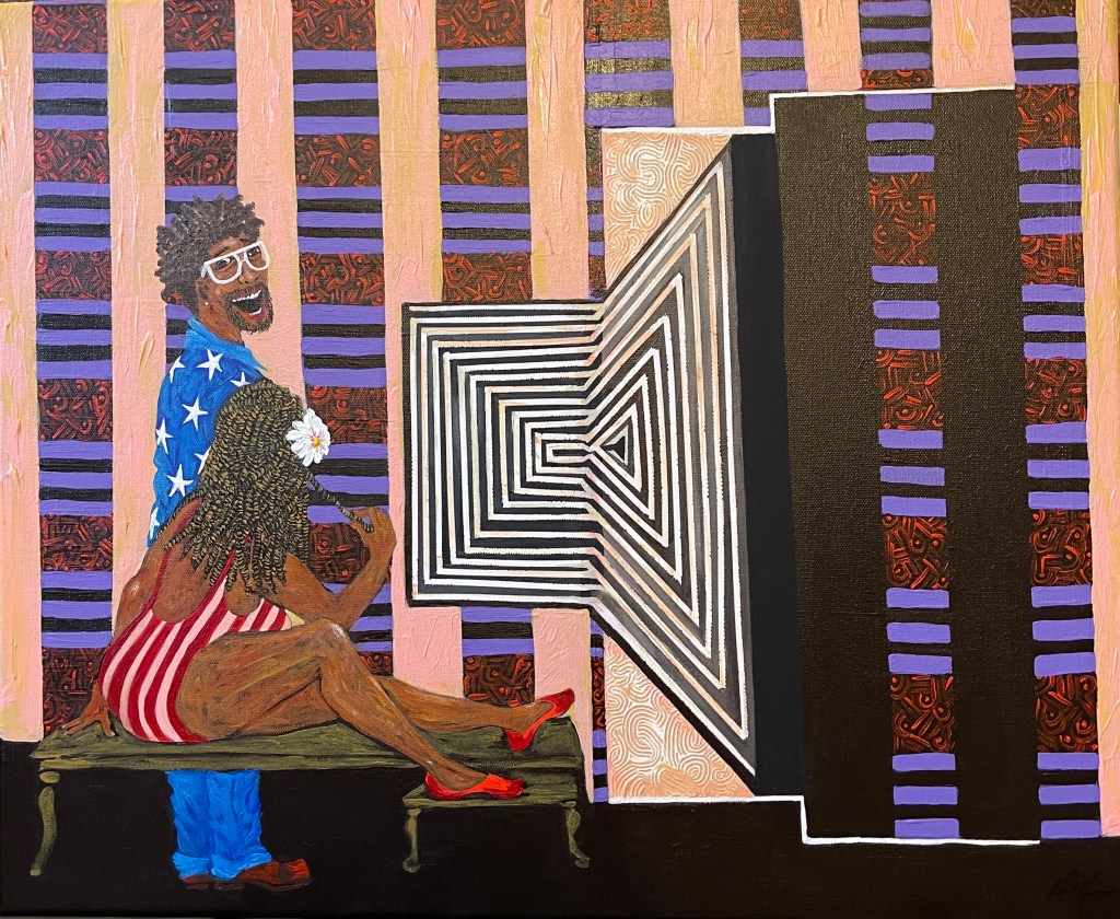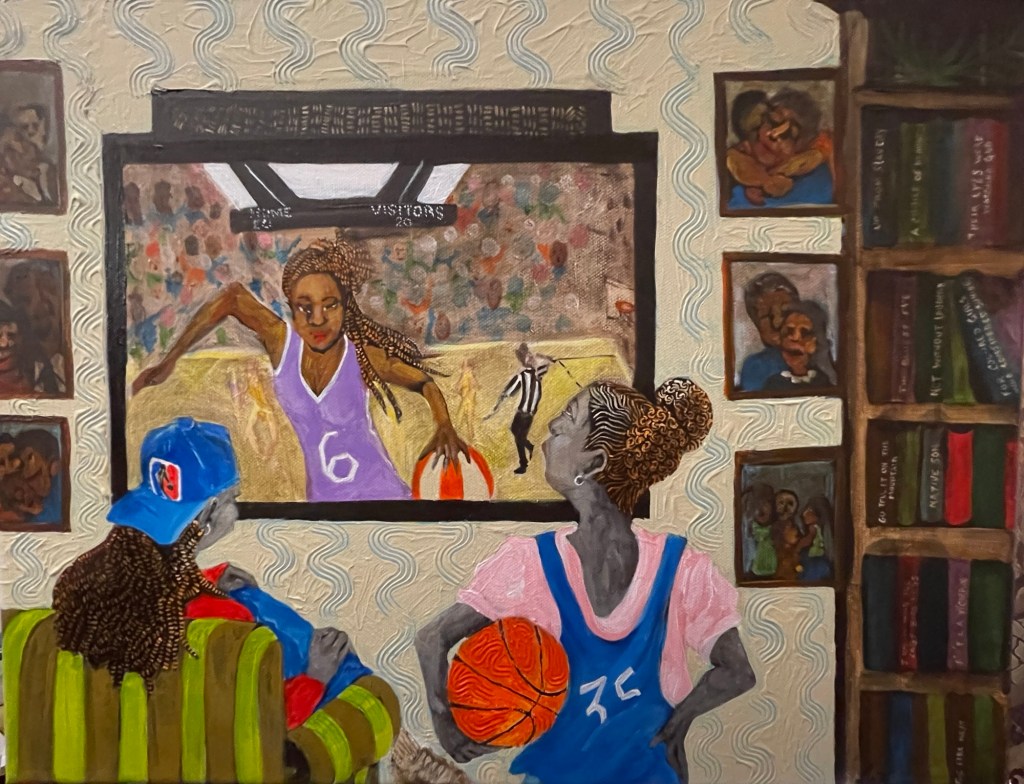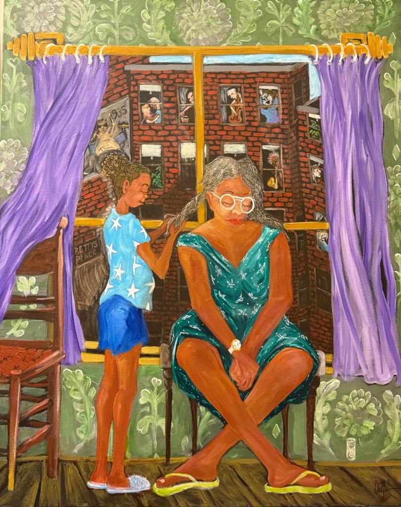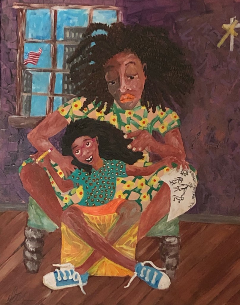 “Because of Her, We Can- (Tribute to Rosa Parks)”“Teach Her to Navigate” 24”x20”“When She Sees Herself on TV” 14”x11”“Tickling Her Keys” 20”x18”“Her Field Trip Jubilee” 60” x 48”“Declaring Her Sentiments” 48” x 36”“Connecting Dots (Until What She Hadn’t Thought to Imagine, Appears) ” 40” x 30”“Singing, Swinging and Being Joyful” 22”x18”“Pink Rollers and Lottery Dreams” 30” x 24”“The Art of Listening” 24”x20”“My Three Sons in the City” 40”x30”“Betty’s Bar & Grill”“Taxi-Cab Convo” 24”x20”“Winning”The Foundry~ Solo exhibition Art Citation 2025“She’s Living her Life Musically” 40” x 30” “Big Fist (My Ugly Art Series)”“When We Dance” 48” x36” “She Named Her Daughter Faith”“From Her Perspective”“Somebody Come & Play” has a new home! @ HCA“Hanging with the Fellas”“His Thinking Red Chair”“Making Positives Out of Negative Space”“Dad’s Do Hair Too”“Upward Bound” (Remembering Ella Watson) 40” x 36” “My Three Sons Grown Up”“All Eyes On The Ball” “Free Knowledge Must Bring Your Own Container”