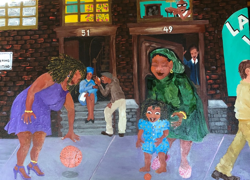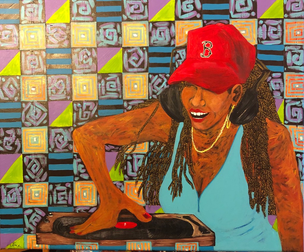 “Double Dutch Jump Rope (Yellow Boots) “Spinning Her Story”“Jazz Lullaby”“Empowering Women” “Playing & Swinging”“She’s Coming Out”“All of Us. Branches of the Tree of Life”“The Bean Eaters” “Her Matriarchy” “Her Broad Shoulders” 24” x 20” “Drama Queen” 20” X 24” “Betty’s Lil’ Director” “Hip Hop Vinyl” 24” x 20”“His Two Sweetest Dreams” “Maybe, Not Now” 20” x 18” “DJ On & On”