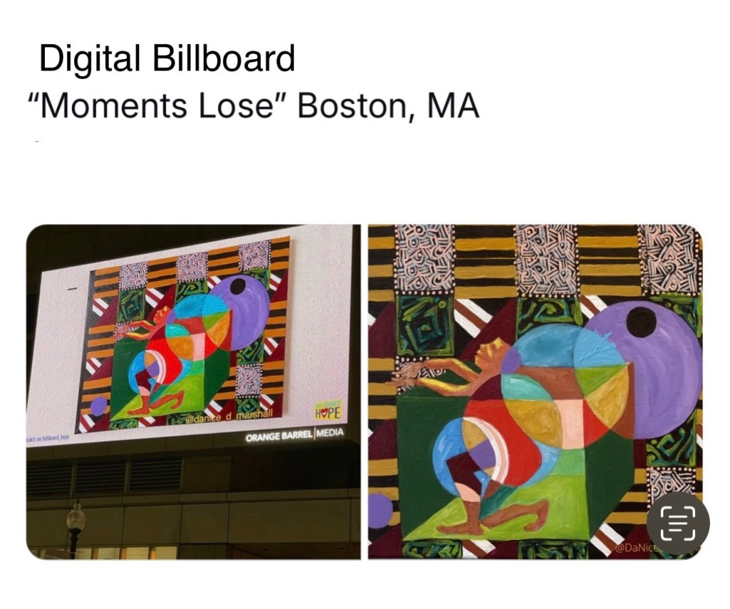 Aired “Here 4 This” on WBZ W/ Lisa Hughes“Anatomy of Hearing in Mono- (triptych)”“Anatomy of Hearing in Stereo- (triptych)”“Anatomy of Hearing Acceptance- (triptych)”“King of Kings”“Getting Her Hair Did”“DaNice D Marshall, artist