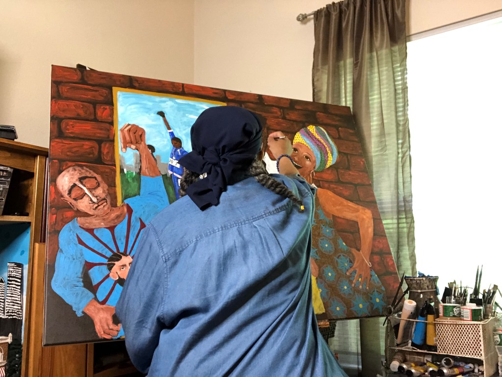 Despite an illness that impacted my writing, I began painting the stories that I wanted to tell. It started with abstracts and evolved to Narrative portraiture. I use paint to mix metaphors and dabble in the richness of color to add syntax to complete sentences and correct dangling modifiers, also known as the elements of style. To that end, I’m a writer who paints.